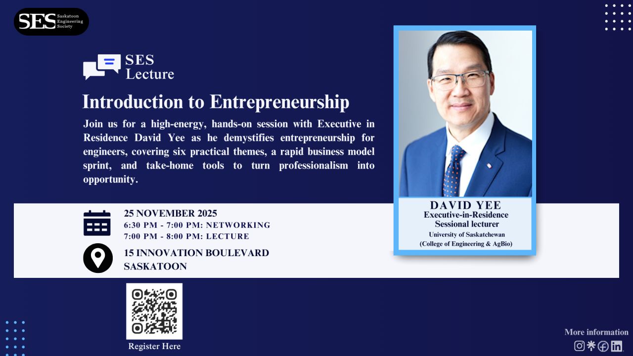 Event Summary: Join us for a high-energy, hands-on session with Executive in Residence, David Yee as he demystifies entrepreneurship for engineers, covering six practical themes, a rapid business model sprint and take-home tools to turn professionalism into opportunity.